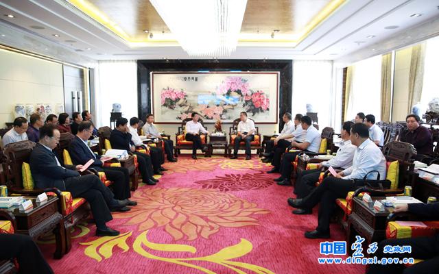 市委副书记、市长戴超与康美药业董事长、总经理马兴田举行座谈。戴超表示,康美药业是国内大健康产业龙头企业,康美大健康产业项目在定西陆续落地,对于推动陇药产业转型升级,助力定西经济社会发展和脱贫攻坚具有重要意义。希望康美药业围绕三年开发三千亩、投资一百亿的初步考虑和打造“中国西部大健康产业园”的目标定位,通过建设规范化的中药材种子种苗基地和精深加工基地、城市智慧药房,打造从GAP种植到GCP应用的全过程标准化产业链、中医大健康产业链。围绕“建设一带一路医药之都,造福世界人民健康长寿”的理念,加快建设中医药场馆及生态酒店等配套设施,打造康养、旅游、美食、住宿、休闲、办公六大功能相配套,展览、交易、商务、会议、学术等环节相衔接,集中药材、陇药历史文化、中医名家、中药名方展示、交流、体验、传播和教育为一体的中医药文化中心和中医药学综合体,不断完善中医药学文化产业链。同时,希望康美药业采取“企业+合作社+农户”等模式,积极参与农村“三变”改革,助力定西脱贫攻坚。
